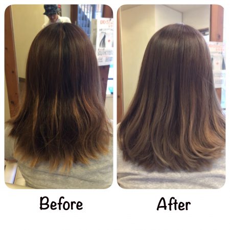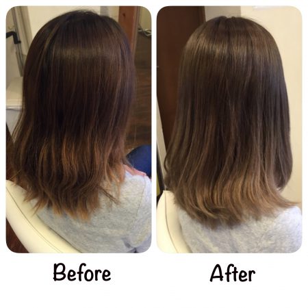 前々回に毛先ほど明るくなるようにハイライト(ブリーチ)を入れて、