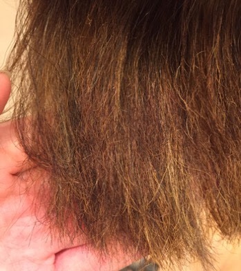 ブラッシングや少し引っ張ったりするだけで切れてしまうような髪の毛としてボロボロ状態です。