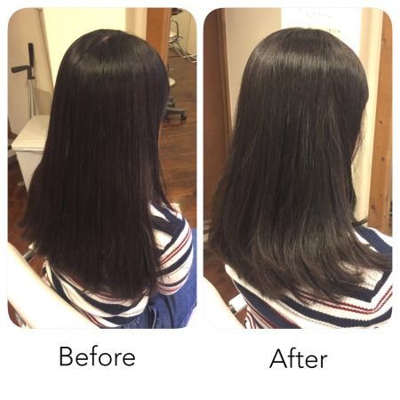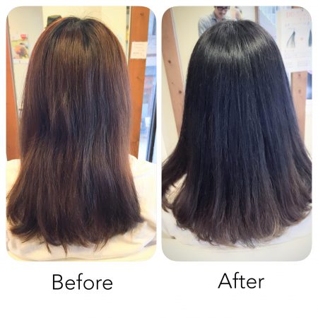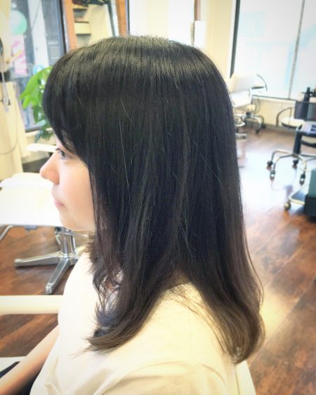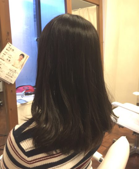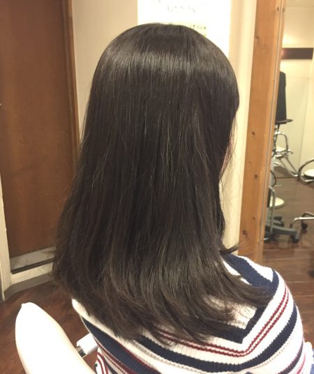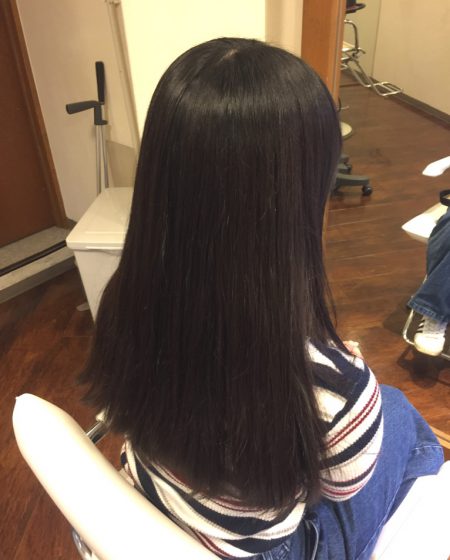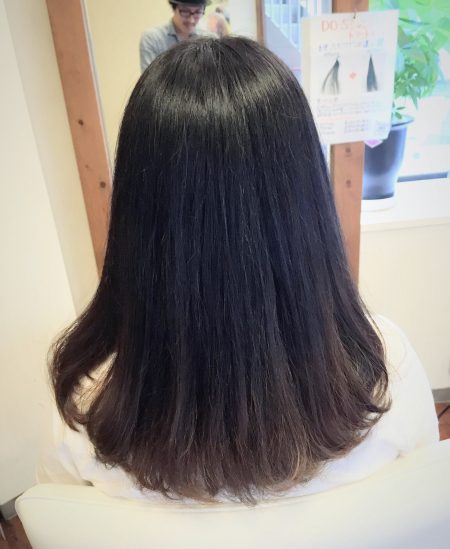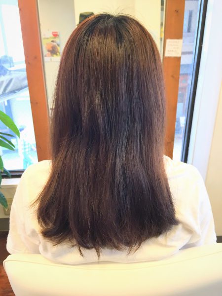 以前のホームカラー(黒染め→オシャレ染め)のせいか、少し色ムラがあります。