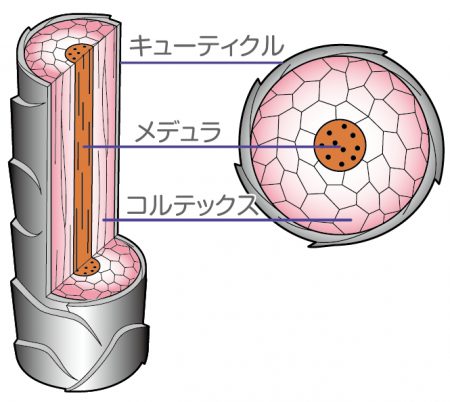 髪の毛の大部分は細い線維状のタンパク質でつくられていますが、毛髪の内部コルテックスの中には、