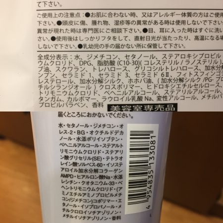 これが1剤の成分表示とあのオイルっぽい質感の正体というわけですね。
