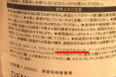 使用する前に混ぜるといっても2剤は普通のヘアカラーに使われる過酸化水素とは全く違います(この2剤の正体はこの後に書きます)