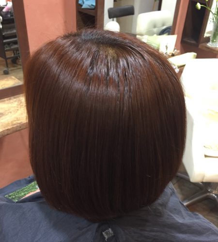 触ってみると驚くほどサラサラでいわゆるヘナショックと呼ばれる、ヘナをした後に髪の毛がきしむ、ゴワゴワするなんてことは微塵も感じません。