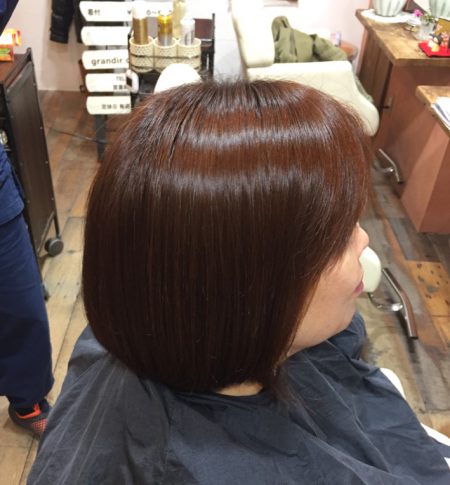 パーマとカラーにより、毛先には少しダメージが出ている状態です。