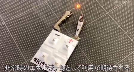 「持ち運びができるので、非常時にジュースや尿を使って発電し、助けを求めることにも使える。実用化に向けて出力をさらに上げたい」