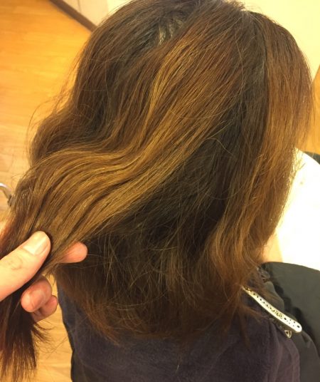 ヘアカラーするのも少し我慢させていたので、根元も結構伸びてしまっています。