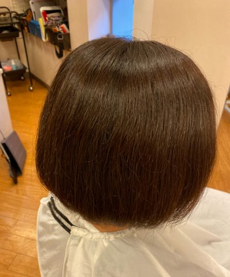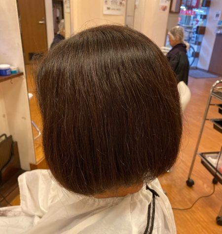ボブスタイルをキープという事でしたので、くせ毛の強弱の箇所などを確認しながらおさまりやすいように1〜2㎝カットしていきました。
