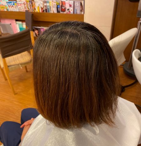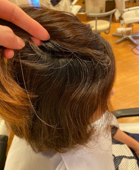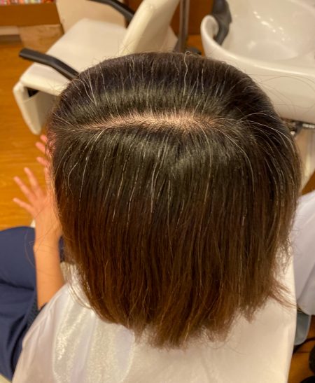 4カ月前から染めれてなかったので、根元が伸びて、明るさの違いと白髪が目立ってきています。