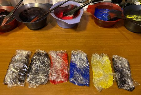 白髪の毛束に染めたノジアは各色ある程度落ちました。