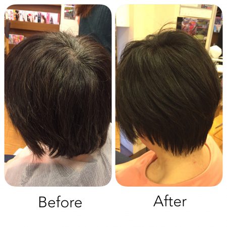 おおー!ハイブリッドカラーで白髪がきれいにそまったー!(≧∇≦)