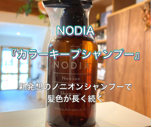 「ノジア カラーキープシャンプー」は、ノジアおよびヘアカラーをされている方のヘアカラーの色持ちが良くなるように開発された非イオン系シャンプーです。