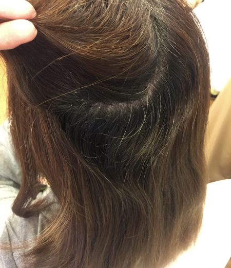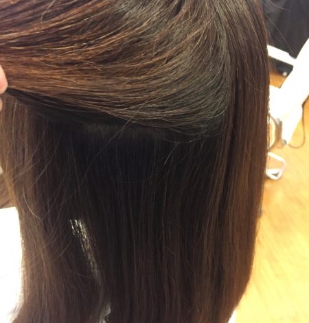 以前に矯正をしてある毛先には優しい薬剤をつけて、