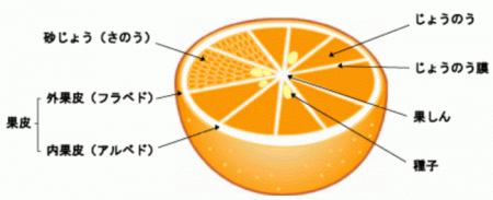 白い筋や果実の袋には、食物繊維やビタミンが多く含まれ、腸内環境を整え、美肌や便秘対策にも有用です。