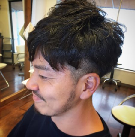 がっつりと内側はツーブロックにして、上は無造作な感じで、カッコイイシルエットのスタイルだね!