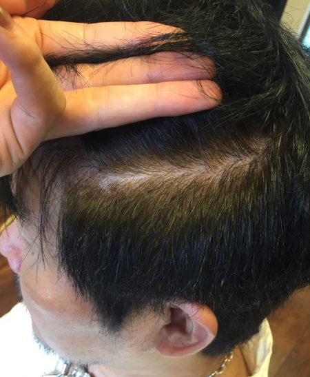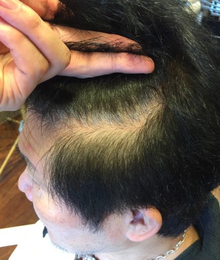 白髪の割合としては少ない箇所は10〜20%くらいなのですが、写真のこめかみ辺りなどは100%に近いくらい白髪があります。