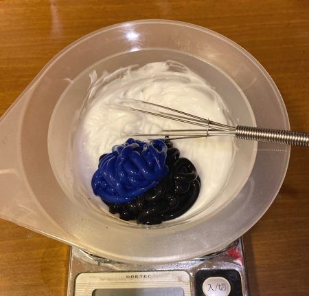 根元のカラー、毛先のカラーと色を変えて調合して塗布していきます。