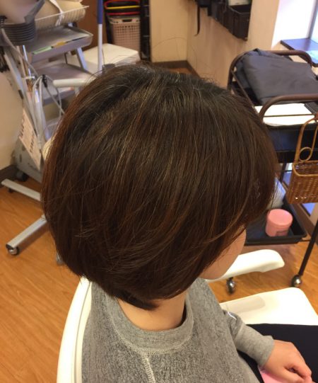 ノンジアミンカラーで明るくなった毛先と白髪をツヤのある髪色に♪