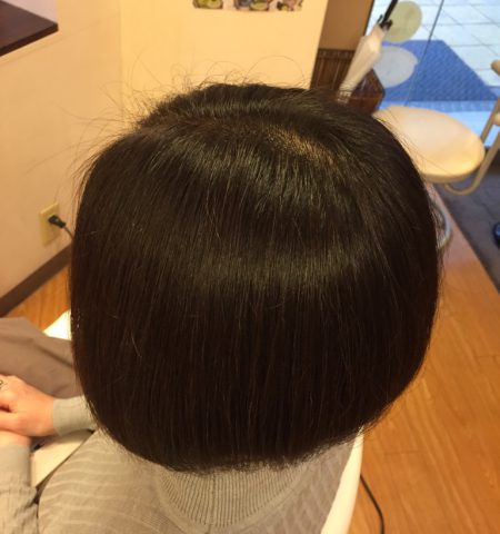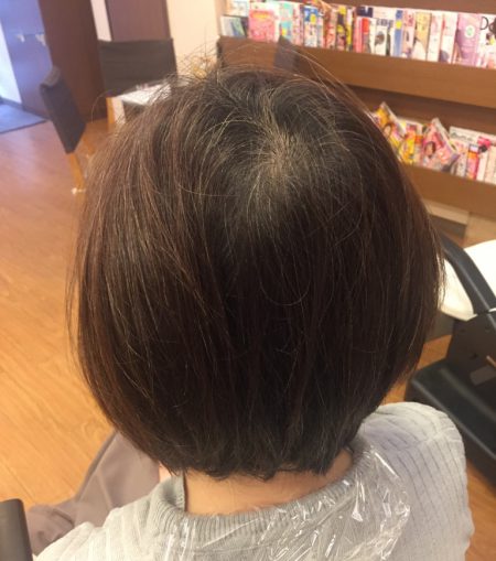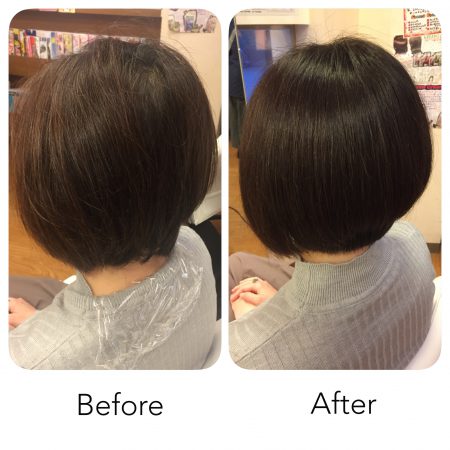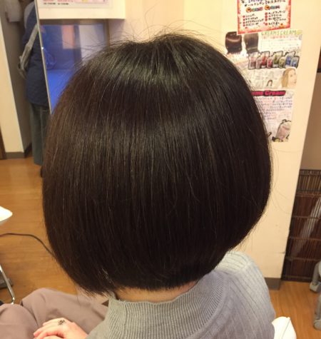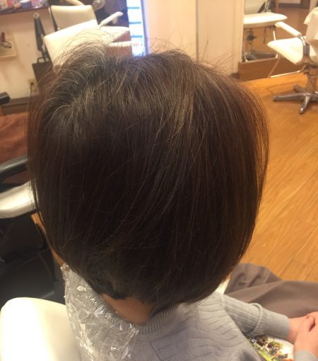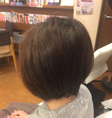 根元の白髪はノンジアミンでもちゃんとカバーしながら、バランスの良い前下がりボブに近づきました。