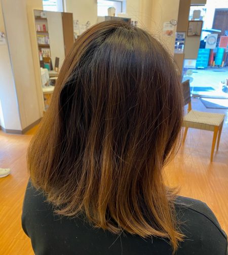 ノンジアミンカラーとハイライト・グラデーションなどのカラーテクニックを用いる事で、期間が空いてしまっても根元が目立ちにくいヘアカラーを楽しんでもらっています♪