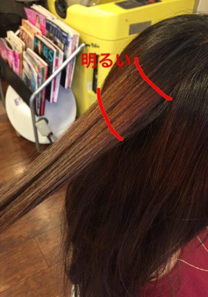 これまでにノンジアミンカラーをしてもらったところが明るくなってしまっているようです。