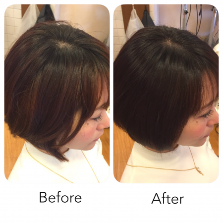 ずっと明るくなりっぱなしだった髪色が落ちついて喜んでもらえました♪