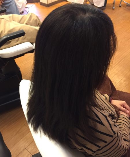 8ヶ月前に縮毛矯正されて、当日も軽くストレートアイロンされて、くくってこられていたので一見くせ毛の強さはそれほどなのですが、