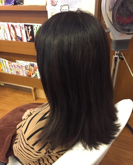 セミロング以上の長さにしておいて、あまり段は入れずに表面の長さも長くしておきます。