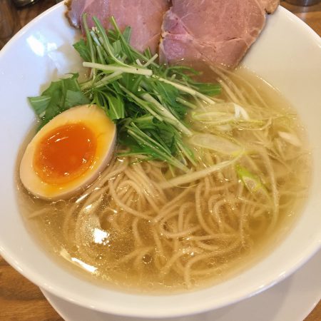 あっさり鶏ガラスープの塩味が細麺とよくあっていて、さらにレア気味のチャーシューや濃いめの煮卵がいい感じでした♪