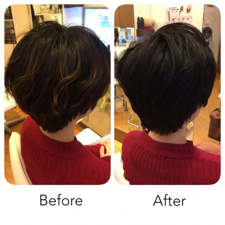 明るくなった毛先の色と、毛先に強く残っていたパーマがなくなりとてもナチュラルに馴染みました♪