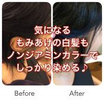 その時点ではメラニン色素は毛髪内に存在しておらず、まだ白髪の状態です。