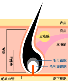 髪の毛は、毛乳頭にある毛母細胞が分裂を繰り返すことによって生成されるのですが、