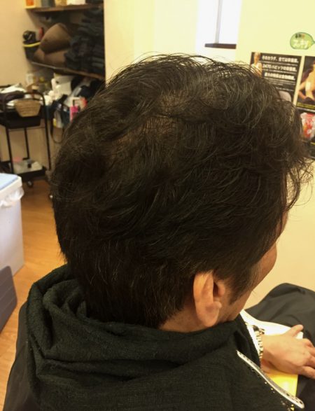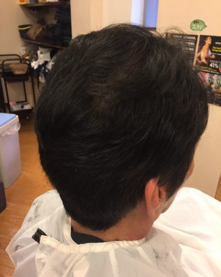 つまり、前回に僕がノンジアミンカラーで白髪染めをさせてもらってから、1カ月ほど経った状態です。