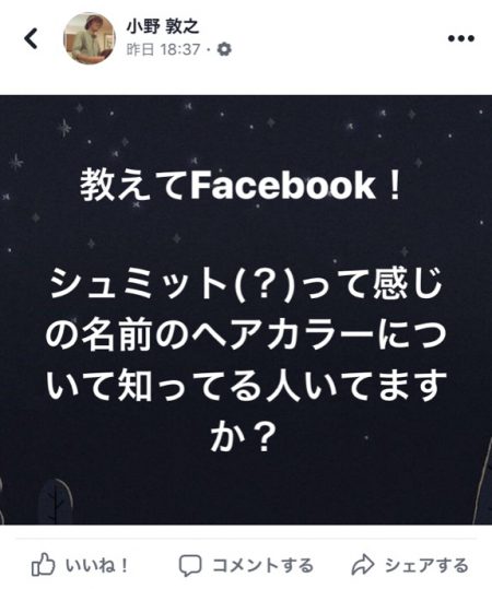 僕より知識の豊富な(マニアック過ぎる)美容師さんがたくさん居てるFacebookに投稿してみましたw