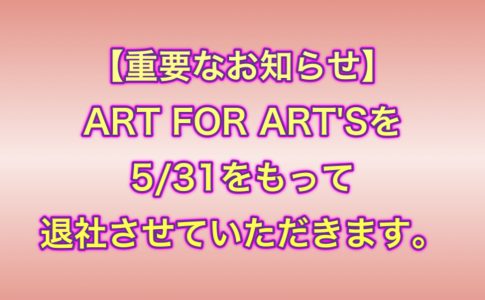 令和3年5月末をもってART FOR ART’Sを退職いたしましたー!