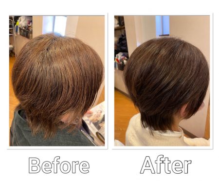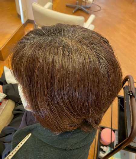 くせ毛でパサつきやすい髪質で、前回のカラーカットから2ヶ月ちょっと経過しているために、