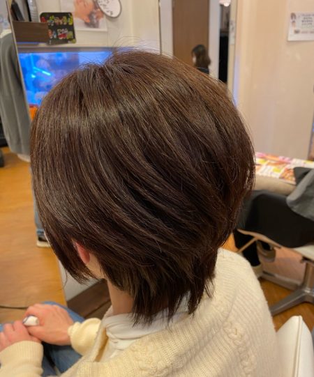 ウルフベースのレイヤーが入って、ネープはやや長めで軽い感じがお好きなお客様ですので、
