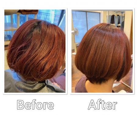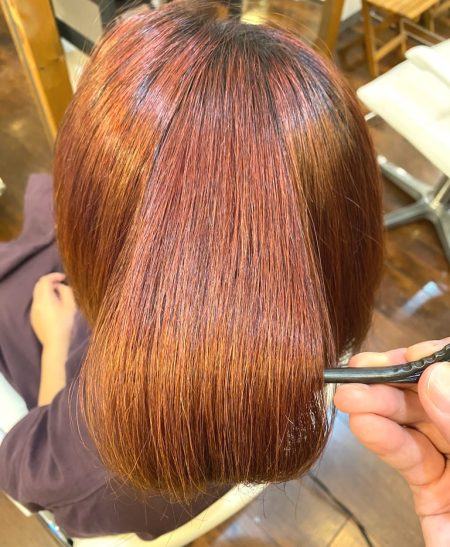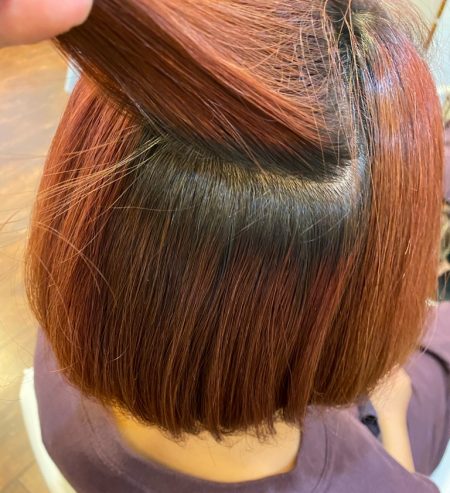 還元剤の量やアルカリが抑えられているため通常のアルカリチオの薬剤で縮毛矯正したときより髪の毛の弾力を残しながらも、ちゃんとクセが伸びたと思います。