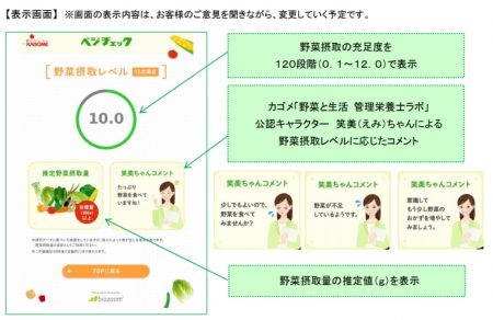 そのうえで日々の野菜摂取量を導き出し、1日の野菜摂取量の概算値を計算してくれるそうです。