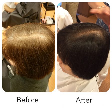 おおー!根元の白髪は目立たなく、毛先にはしっかりと色が入りました!(≧∇≦)