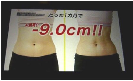 腹部に使用すれば1カ月で劇的なダイエット効果が得られるかのように表示していました。